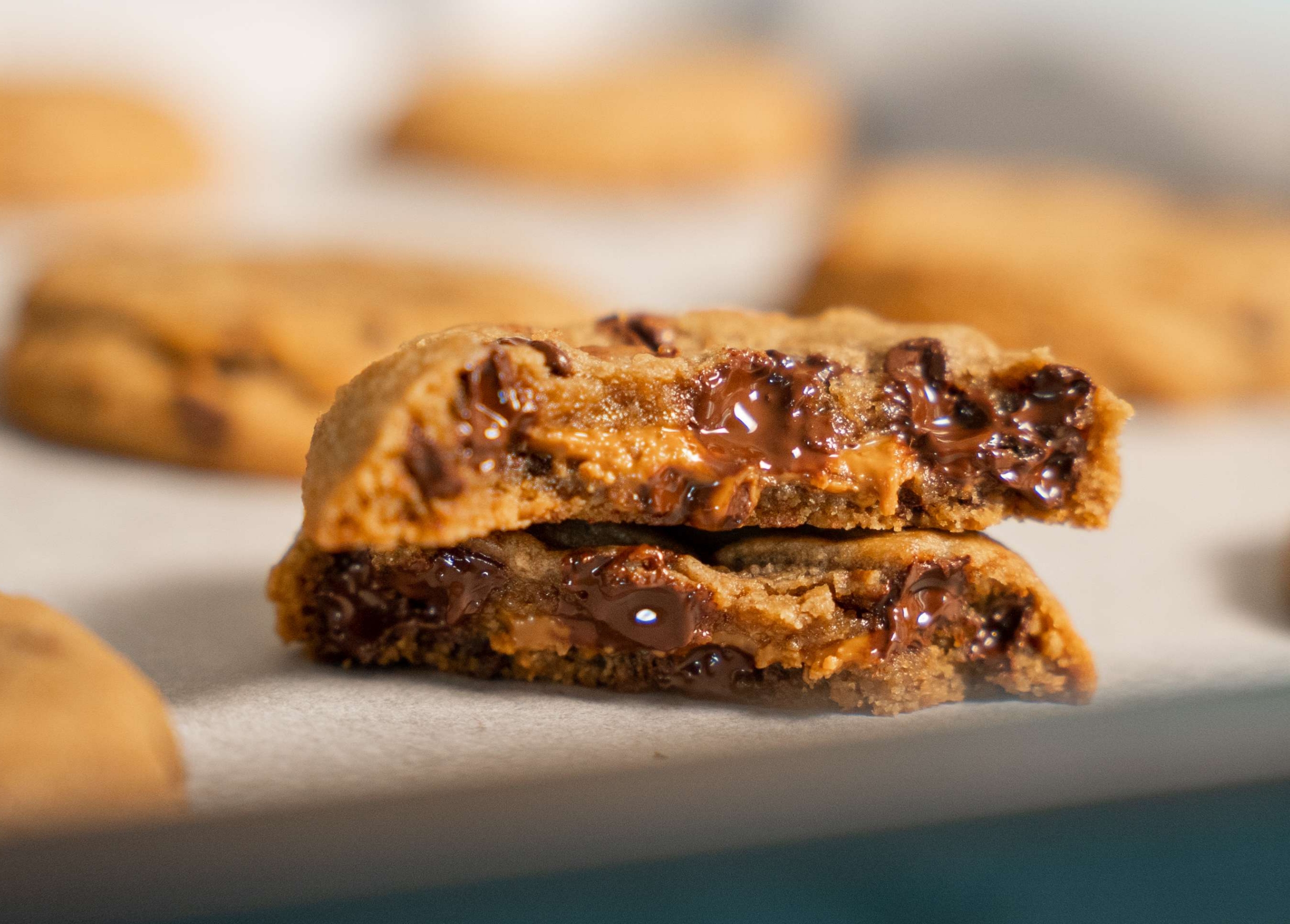 Es dauert ca. 30 Stunden, bis eine Portion Cookies bereit für den Ofen ist! Zuerst stellen wir den Teig her, portionieren die Füllung, lassen den Teig ruhen, portionieren diesen dann und befüllen ihn. Danach geht’s in den Backofen. Jeder Cookie ist ein Unikat, selbst wenn sie unter gleichen Umständen mit mit der selben Liebe gebacken wurden.